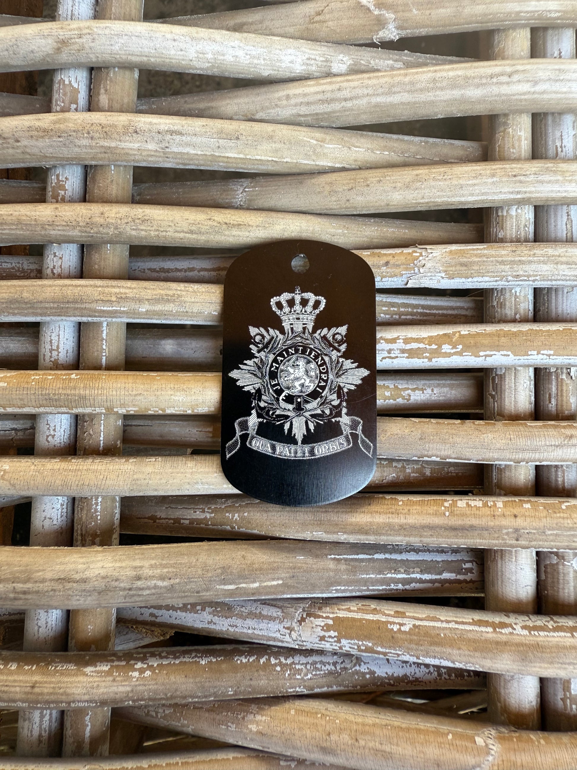 Laat jouw eenheidslogo, callsign, motto of naam graveren op een robuuste sleutelhanger. Onze ontwerpen worden met precisie gegraveerd in aluminium of RVS. Denk aan het embleem van het Korps Mariniers, de globe met anker, of de befaamde motto’s van jouw peloton.